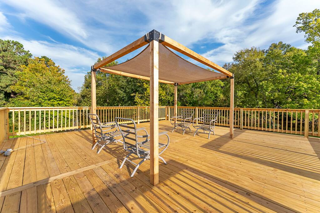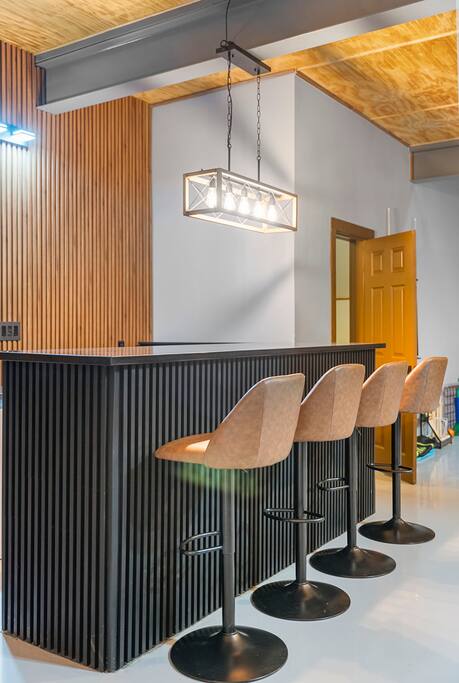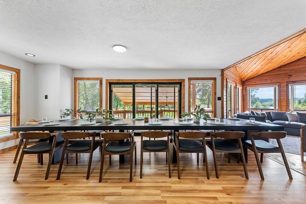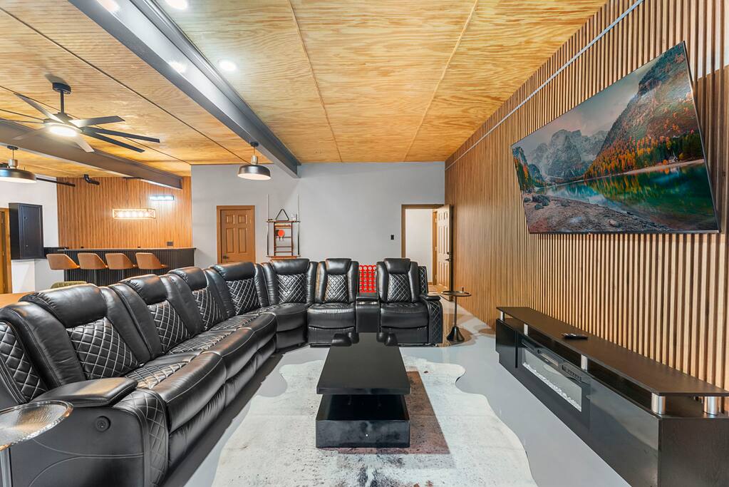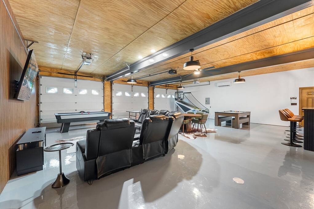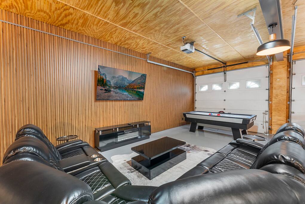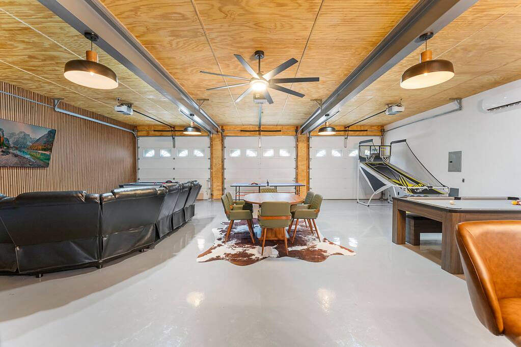 LIST OF AMENITIES - giant sparkling pool/spa - private pickleball court/multi-sport court - 4 hole mini-golf - 2 soccer nets - enclosed trampoline - kids playground - paddleboards (x2) - Gameroom: air hockey, billiards, ping-pong, game table, basketball game, bar area, media couch + big screen TV, and more! - Smart TV's throughout - inside separate gaming area adjacent to main living room in main house with play-station ...AND SO MUCH MORE! SPACES This modernized cabin-style home is really two homes on one property. The main house has 3 bedrooms (bunkroom-no stairs required, queen bedroom- 2nd floor, and primary King bedroom-3rd floor) with full kitchen, living room, 2nd living room, and 3 full bathrooms. The 2nd home is 25 feet from main house and has the converted 3 car RV garage game room with upstairs 2nd-level kitchen, living room, 2 bedrooms (bunk room with 2 bunk-beds and queen bedroom) with one full bathroom. Each house has plenty of deck-space with views of the lake. Both homes do have several stairs to reach bedrooms and main living spaces are on 2nd floors. There is plenty of space to park several cars (10 very comfortably). IMPORTANT NOTES: **There is an elevator in the main house that can reach the 2nd floor with queen bed. If you have elderly or those that need assistance or require the use of the elevator, please let us know as we will provide a separate key with code to access it. **While this home does have some fencing, please note there is NO fencing around the pool or preventing children from falling into the lake so please prepare accordingly. You release the owner and property manager from any liability for the use of the property and understand water risks of being lakefront and with a pool.