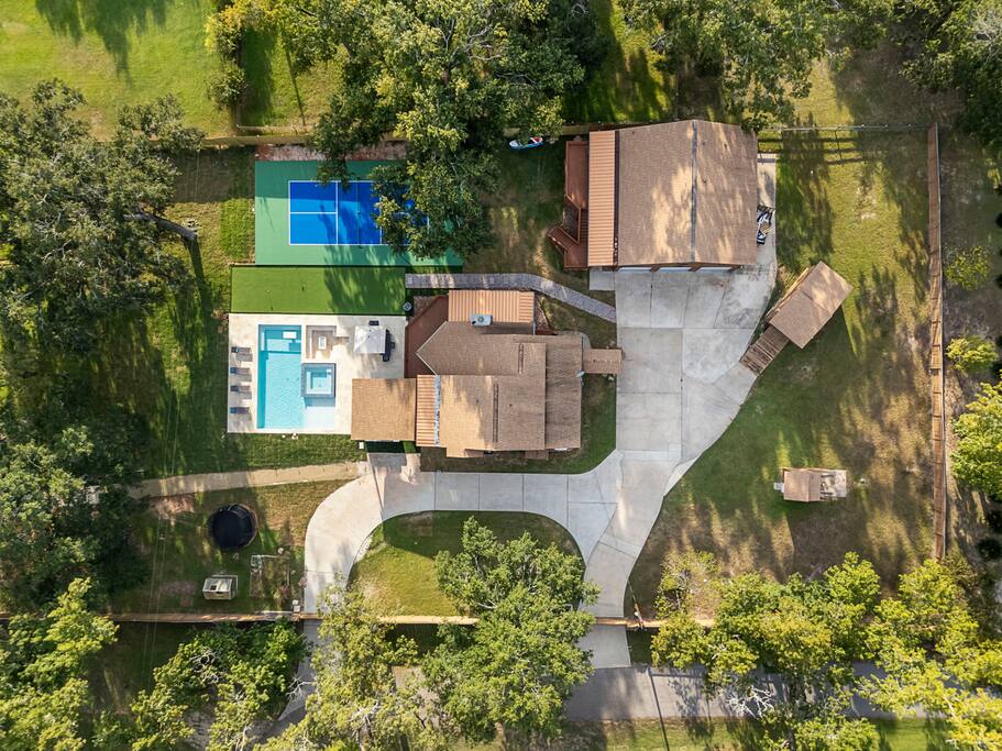 Down country roads on the north shores of Lake Conroe in Willis, TX you will find our country modern oasis "Infinity Oaks", the ULTIMATE family-fun lakehouse retreat on 2+ acres! Swim in the sparkling new custom pool/spa, enjoy the sunken fire-pit with s'mores, play air hockey/ping pong/billiards in the custom game-room with bar & big-screen TV, or go on the paddleboards on Lake Conroe! Literally the fun will never end here with the additional private pickleball/multi-sport court, games, & more!
