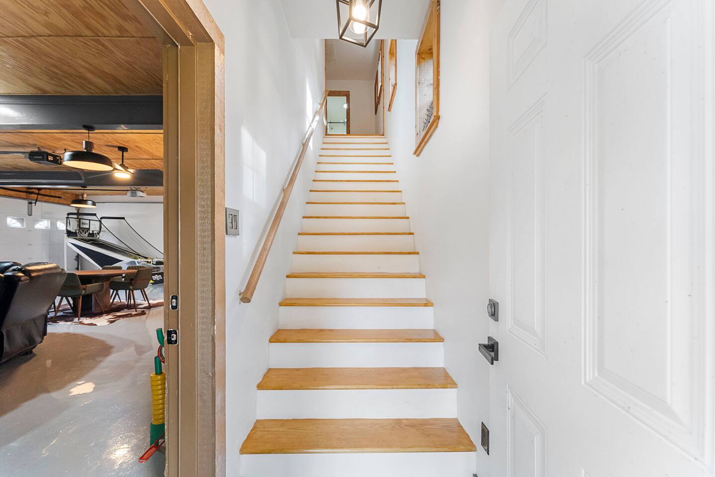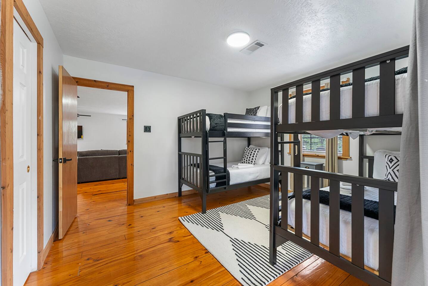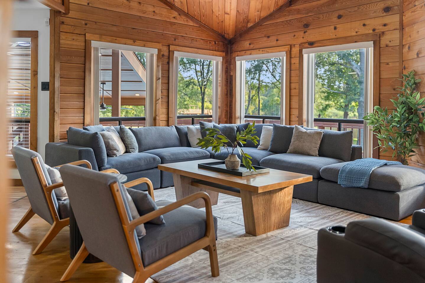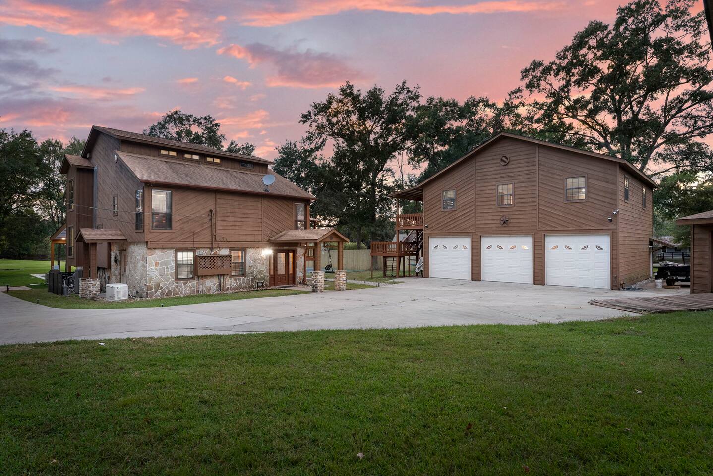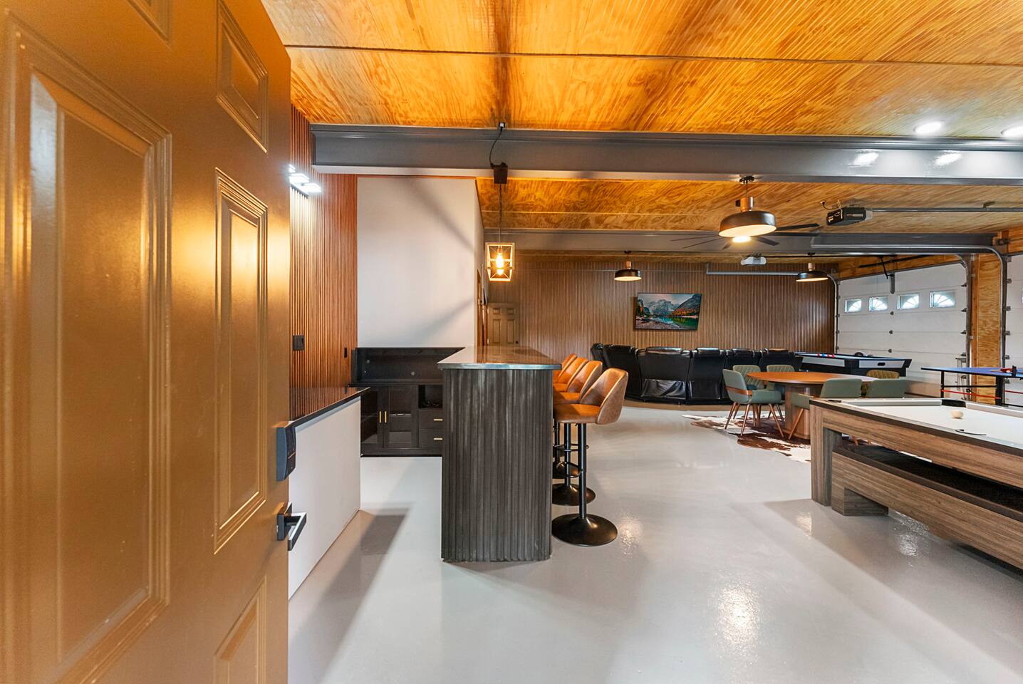 LIST OF AMENITIES - giant sparkling pool/spa - private pickleball court/multi-sport court - 4 hole mini-golf - 2 soccer nets - enclosed trampoline - kids playground - paddleboards (x2) - Gameroom: air hockey, billiards, ping-pong, game table, basketball game, bar area, media couch + big screen TV, and more! - Smart TV's throughout - inside separate gaming area adjacent to main living room in main house with play-station ...AND SO MUCH MORE! SLEEPING • MAIN HOUSE - 1st floor bedrooms: bunk room (2 FULL beds – 4 total people) full bathroom next to bedroom - 2nd floor bedroom: queen bed (elevator accessible), full bathroom next to bedroom - 3rd floor bedroom: King bed, primary suite (requires stairs to access), ensuite bathroom • 2ND HOME - 2nd floor bedroom: Queen bed - 2nd floor bedroom: bunk beds (4 twin beds), Full bathroom in main living area available - Blow up queen mattress in living room SPACES This modernized cabin-style home is really two homes on one property. The main house has 3 bedrooms (bunkroom-no stairs required, queen bedroom- 2nd floor, and primary King bedroom-3rd floor) with full kitchen, living room, 2nd living room, and 3 full bathrooms. The 2nd home is 25 feet from main house and has the converted 3 car RV garage game room with upstairs 2nd-level kitchen, living room, 2 bedrooms (bunk room with 2 bunk-beds and queen bedroom) with one full bathroom. Each house has plenty of deck-space with views of the lake. Both homes do have several stairs to reach bedrooms and main living spaces are on 2nd floors. There is plenty of space to park several cars (10 very comfortably). *IMPORTANT* LAKE ACCESS: a boat rental service company can be arranged after the booking however they will not deliver to the home itself. The drop off/pickup for the boat rental will be arranged offsite. If you have a boat, you are welcome to bring it and there is a public boat ramp about 5 min away to access the lake. Please note that the waters can be shallow around the property and it may be difficult to access with your boat. We do have 2 covered boat slips on-site if desired. There are some hazards north of 1097 bridge so please do your research so you understand the risks associated with parking your boat at the property. ELEVATOR: There is an elevator in the main house that can reach the 2nd floor with queen bed. If you have elderly or those that need assistance or require the use of the elevator, please let us know as we will provide a separate key with code to access it. WATER SAFETY: While this home does have some fencing, please note there is NO fencing around the pool or preventing children from falling into the lake so please prepare accordingly. You release the owner and property manager from any liability for the use of the property and understand water risks of being lakefront and with a pool.
