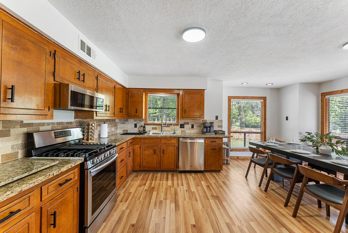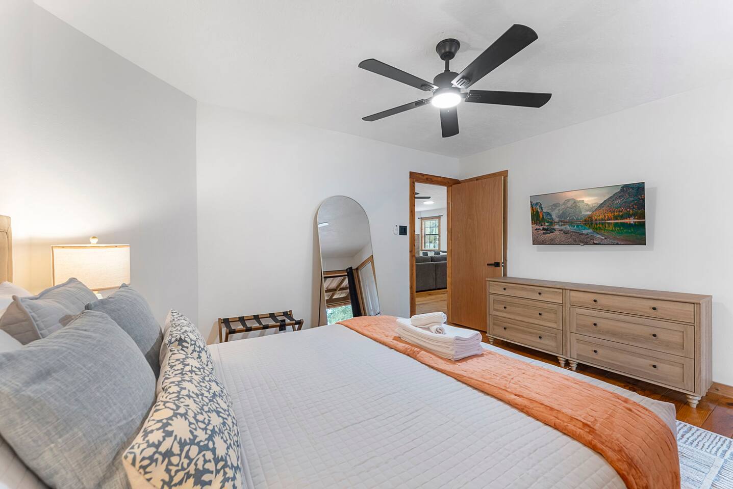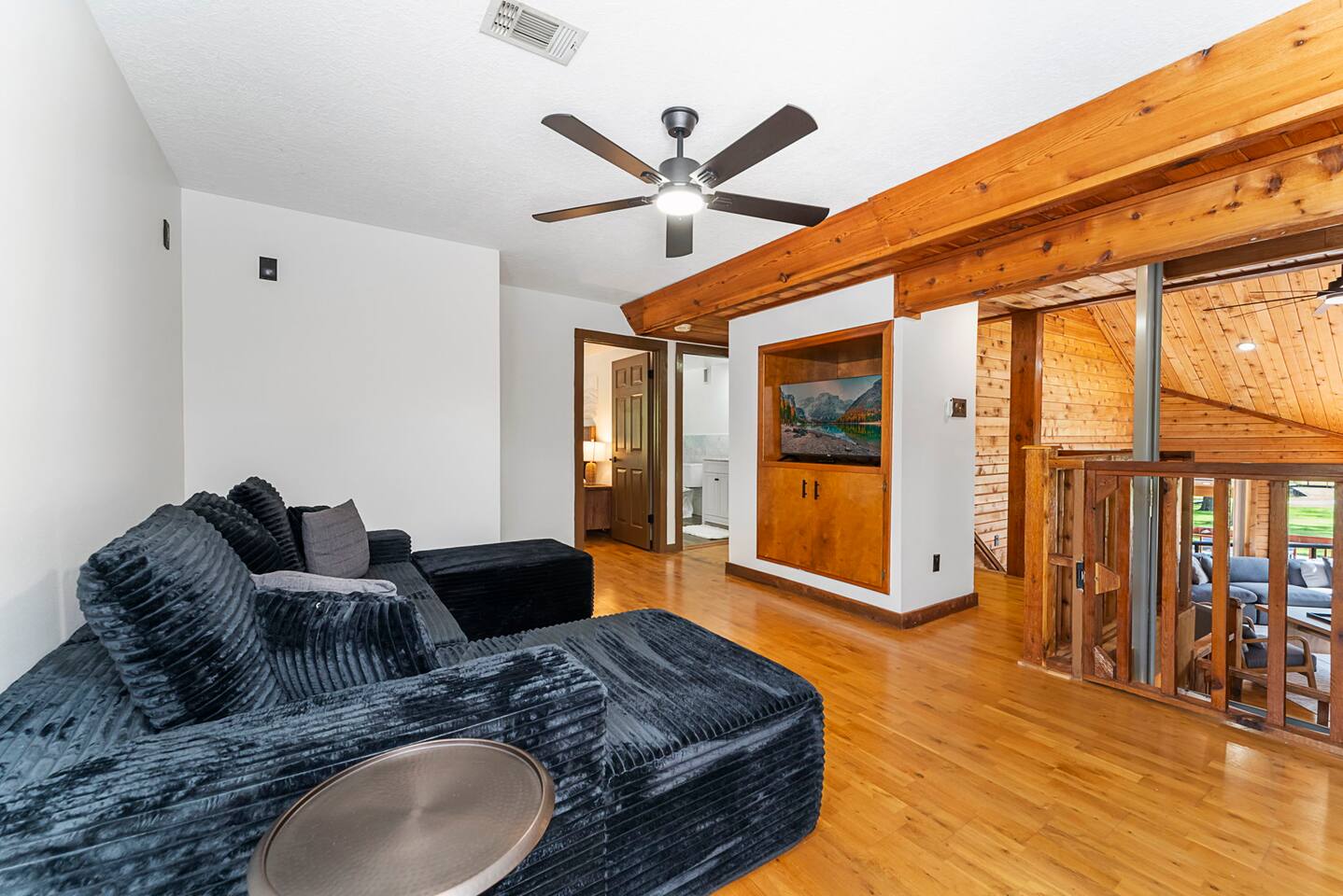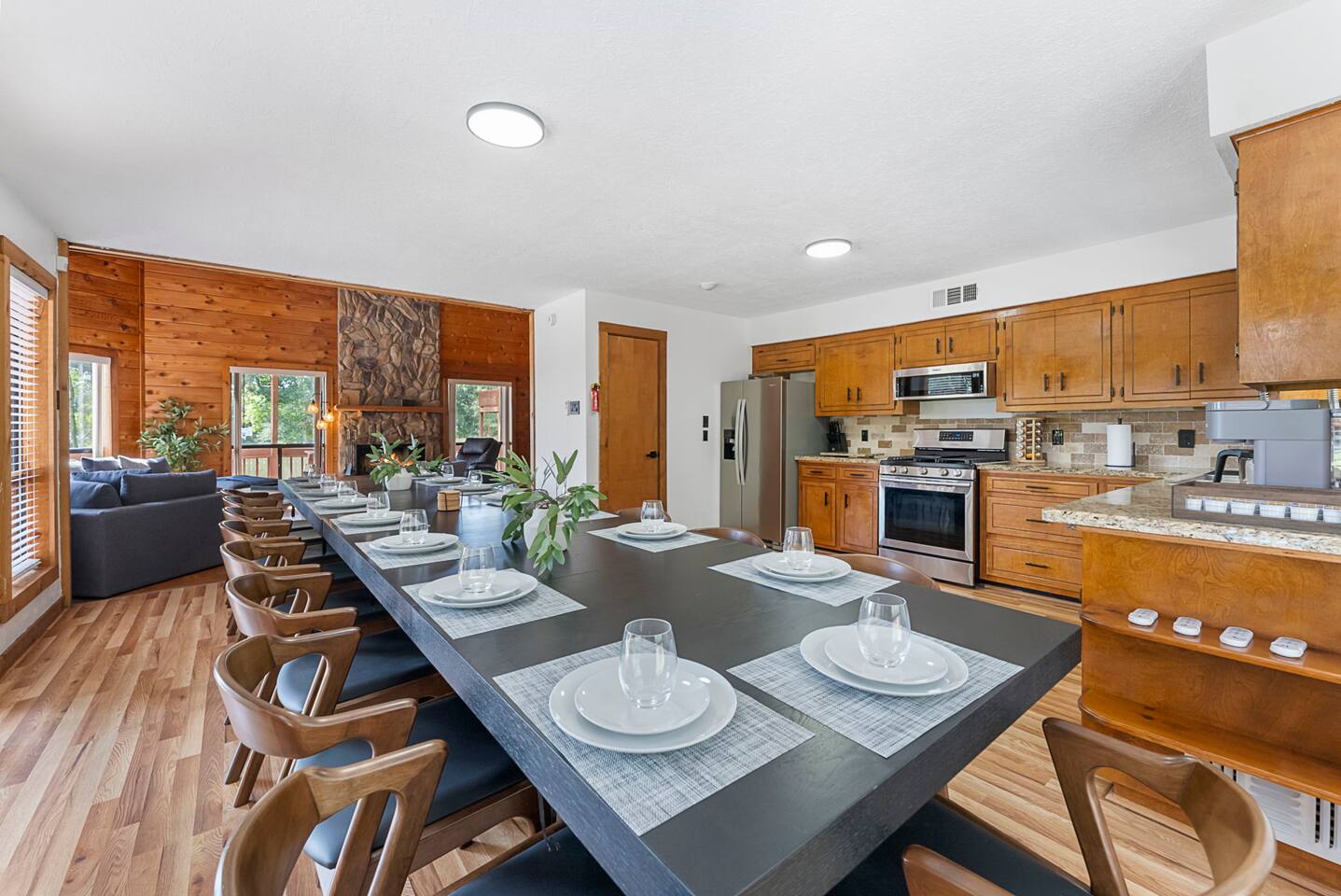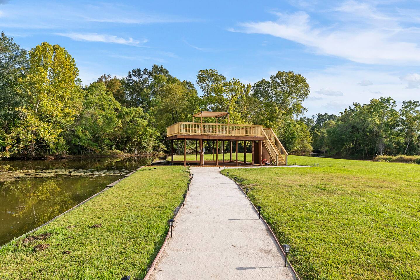 LIST OF AMENITIES - giant sparkling pool/spa - private pickleball court/multi-sport court - 4 hole mini-golf - 2 soccer nets - enclosed trampoline - kids playground - paddleboards (x2) - Gameroom: air hockey, billiards, ping-pong, game table, basketball game, bar area, media couch + big screen TV, and more! - Smart TV's throughout - inside separate gaming area adjacent to main living room in main house with play-station ...AND SO MUCH MORE! SLEEPING • MAIN HOUSE - 1st floor bedrooms: bunk room (2 FULL beds – 4 total people) full bathroom next to bedroom - 2nd floor bedroom: queen bed (elevator accessible), full bathroom next to bedroom - 3rd floor bedroom: King bed, primary suite (requires stairs to access), ensuite bathroom • 2ND HOME - 2nd floor bedroom: Queen bed - 2nd floor bedroom: bunk beds (4 twin beds), Full bathroom in main living area available - Blow up queen mattress in living room SPACES This modernized cabin-style home is really two homes on one property. The main house has 3 bedrooms (bunkroom-no stairs required, queen bedroom- 2nd floor, and primary King bedroom-3rd floor) with full kitchen, living room, 2nd living room, and 3 full bathrooms. The 2nd home is 25 feet from main house and has the converted 3 car RV garage game room with upstairs 2nd-level kitchen, living room, 2 bedrooms (bunk room with 2 bunk-beds and queen bedroom) with one full bathroom. Each house has plenty of deck-space with views of the lake. Both homes do have several stairs to reach bedrooms and main living spaces are on 2nd floors. There is plenty of space to park several cars (10 very comfortably). *IMPORTANT* LAKE ACCESS: a boat rental service company can be arranged after the booking however they will not deliver to the home itself. The drop off/pickup for the boat rental will be arranged offsite. If you have a boat, you are welcome to bring it and there is a public boat ramp about 5 min away to access the lake. Please note that the waters can be shallow around the property and it may be difficult to access with your boat. We do have 2 covered boat slips on-site if desired. There are some hazards north of 1097 bridge so please do your research so you understand the risks associated with parking your boat at the property. ELEVATOR: There is an elevator in the main house that can reach the 2nd floor with queen bed. If you have elderly or those that need assistance or require the use of the elevator, please let us know as we will provide a separate key with code to access it. WATER SAFETY: While this home does have some fencing, please note there is NO fencing around the pool or preventing children from falling into the lake so please prepare accordingly. You release the owner and property manager from any liability for the use of the property and understand water risks of being lakefront and with a pool.