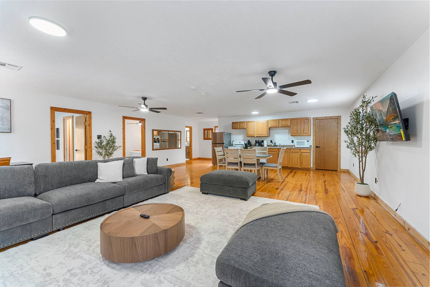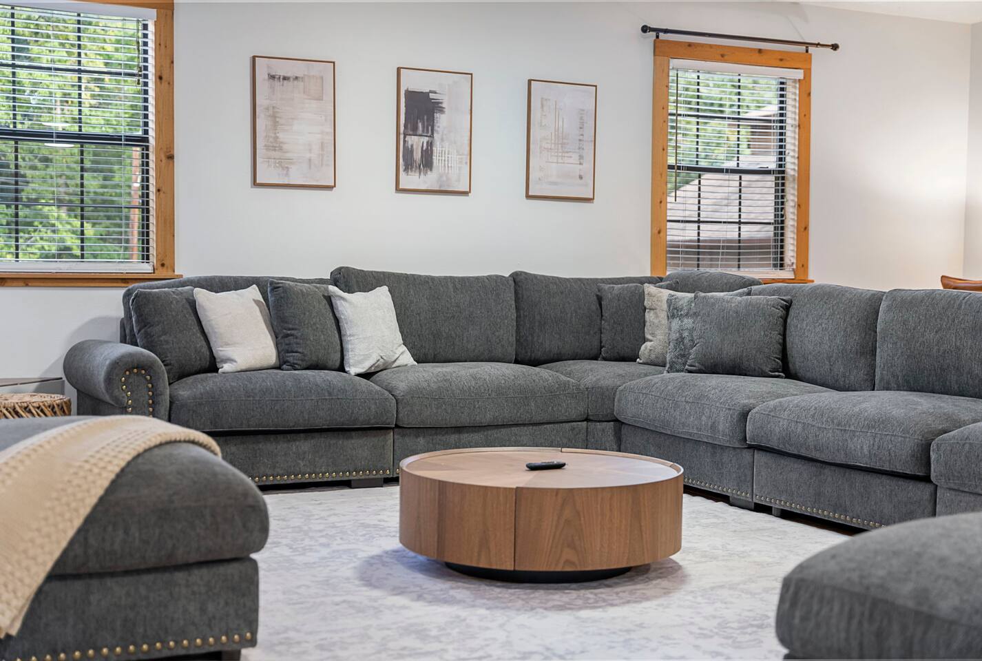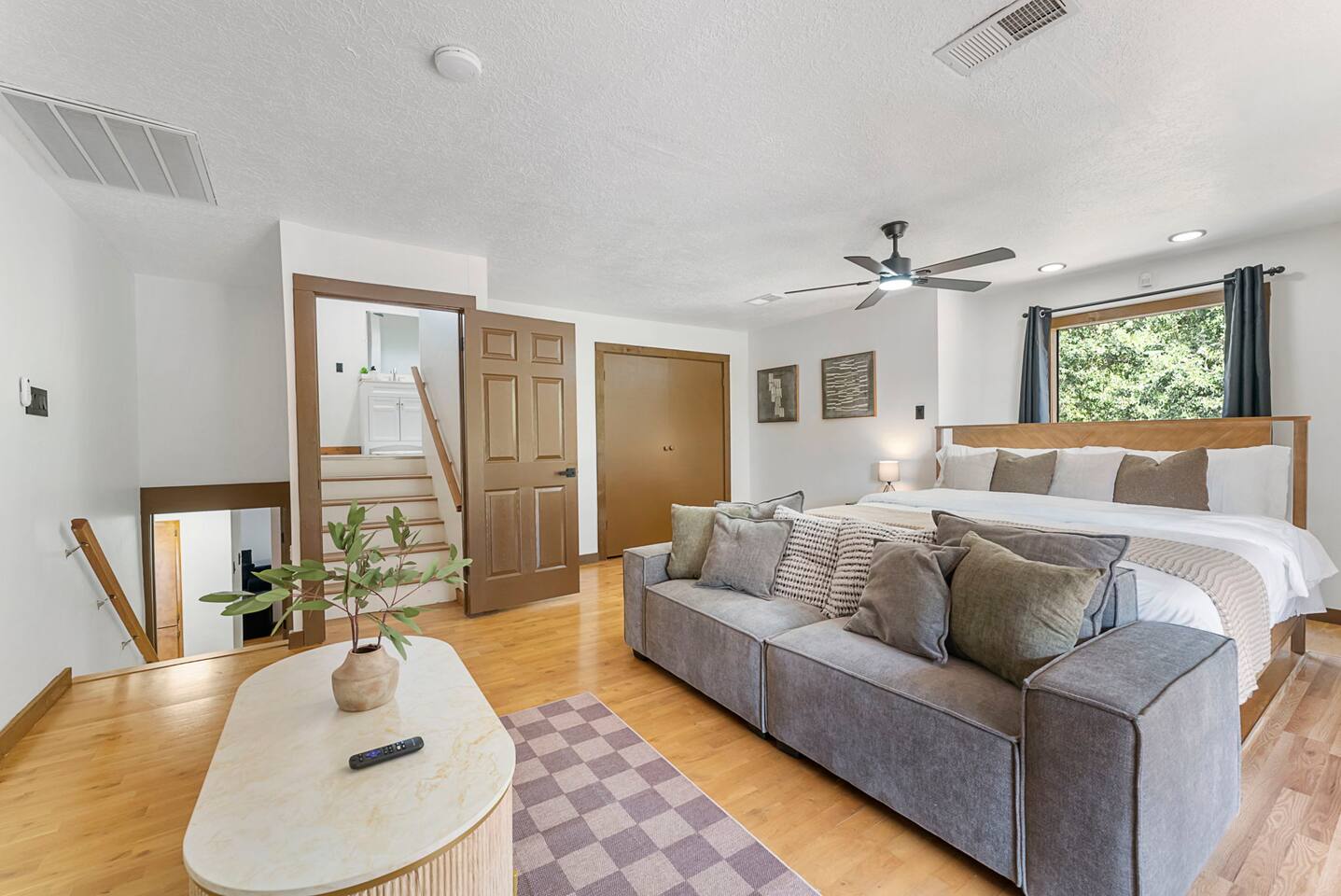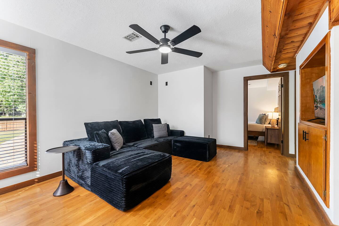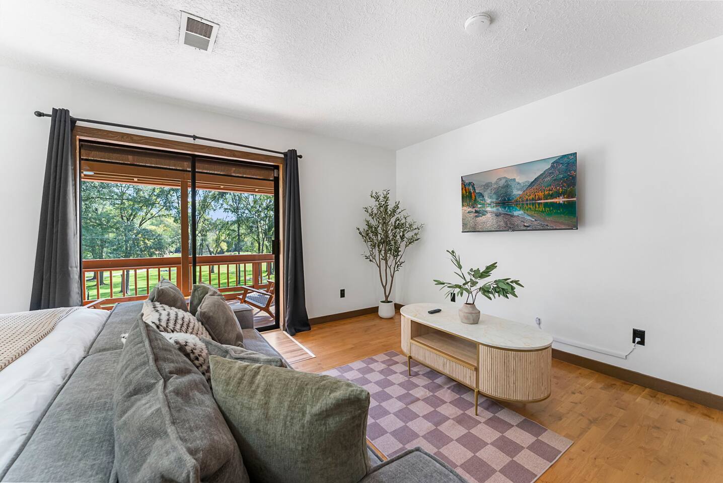 LIST OF AMENITIES - giant sparkling pool/spa - private pickleball court/multi-sport court - 4 hole mini-golf - 2 soccer nets - enclosed trampoline - kids playground - paddleboards (x2) - Gameroom: air hockey, billiards, ping-pong, game table, basketball game, bar area, media couch + big screen TV, and more! - Smart TV's throughout - inside separate gaming area adjacent to main living room in main house with play-station ...AND SO MUCH MORE! SLEEPING • MAIN HOUSE - 1st floor bedrooms: bunk room (2 FULL beds – 4 total people) full bathroom next to bedroom - 2nd floor bedroom: queen bed (elevator accessible), full bathroom next to bedroom - 3rd floor bedroom: King bed, primary suite (requires stairs to access), ensuite bathroom • 2ND HOME - 2nd floor bedroom: Queen bed - 2nd floor bedroom: bunk beds (4 twin beds), Full bathroom in main living area available - Blow up queen mattress in living room SPACES This modernized cabin-style home is really two homes on one property. The main house has 3 bedrooms (bunkroom-no stairs required, queen bedroom- 2nd floor, and primary King bedroom-3rd floor) with full kitchen, living room, 2nd living room, and 3 full bathrooms. The 2nd home is 25 feet from main house and has the converted 3 car RV garage game room with upstairs 2nd-level kitchen, living room, 2 bedrooms (bunk room with 2 bunk-beds and queen bedroom) with one full bathroom. Each house has plenty of deck-space with views of the lake. Both homes do have several stairs to reach bedrooms and main living spaces are on 2nd floors. There is plenty of space to park several cars (10 very comfortably). *IMPORTANT* LAKE ACCESS: a boat rental service company can be arranged after the booking however they will not deliver to the home itself. The drop off/pickup for the boat rental will be arranged offsite. If you have a boat, you are welcome to bring it and there is a public boat ramp about 5 min away to access the lake. Please note that the waters can be shallow around the property and it may be difficult to access with your boat. We do have 2 covered boat slips on-site if desired. There are some hazards north of 1097 bridge so please do your research so you understand the risks associated with parking your boat at the property. ELEVATOR: There is an elevator in the main house that can reach the 2nd floor with queen bed. If you have elderly or those that need assistance or require the use of the elevator, please let us know as we will provide a separate key with code to access it. WATER SAFETY: While this home does have some fencing, please note there is NO fencing around the pool or preventing children from falling into the lake so please prepare accordingly. You release the owner and property manager from any liability for the use of the property and understand water risks of being lakefront and with a pool.