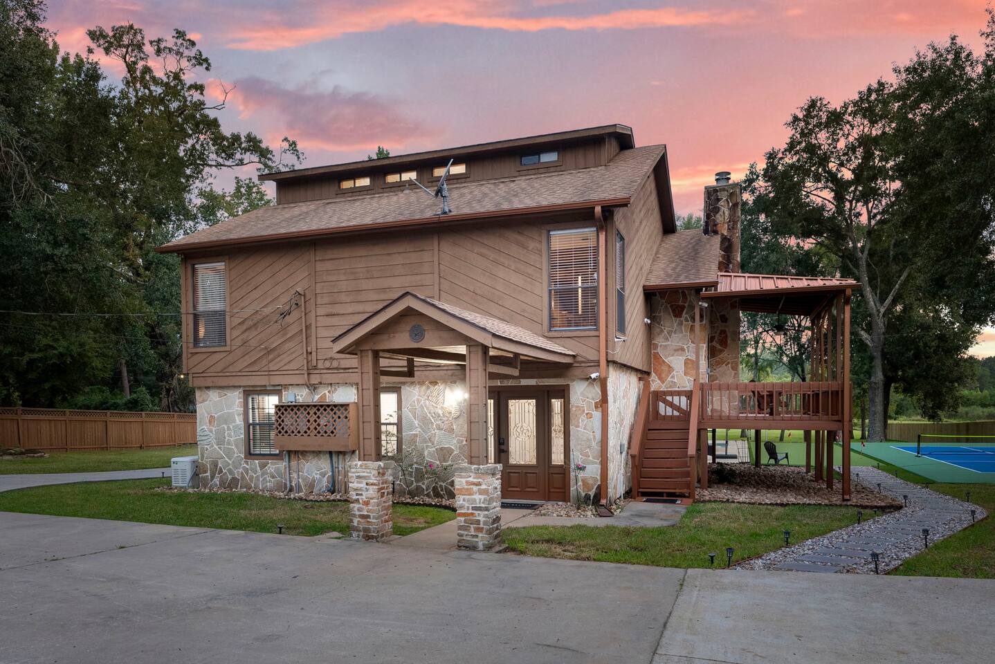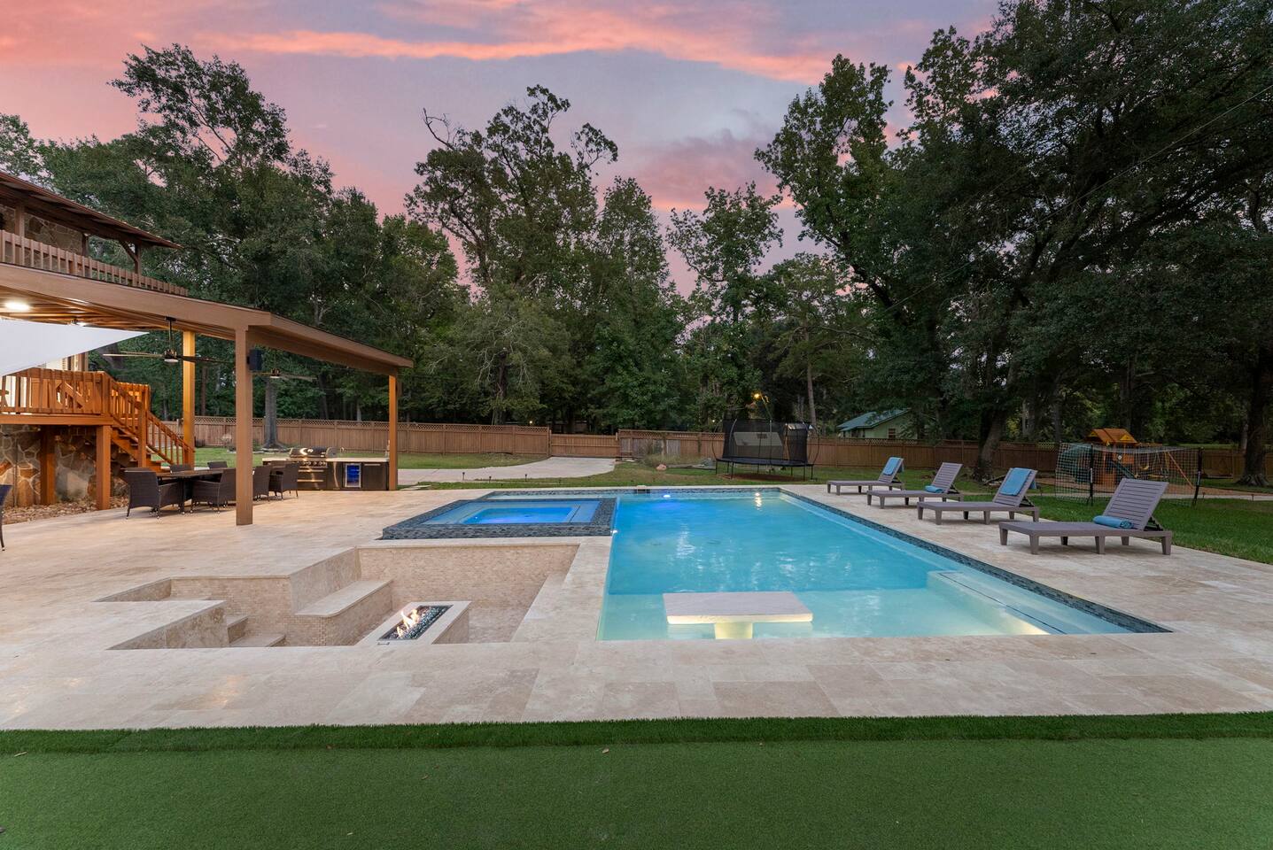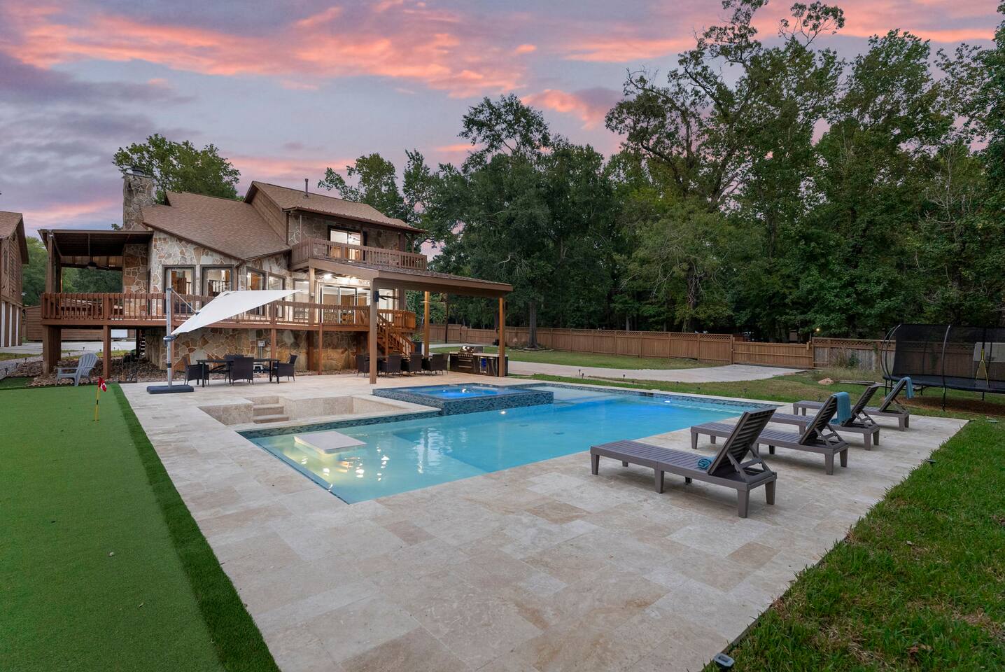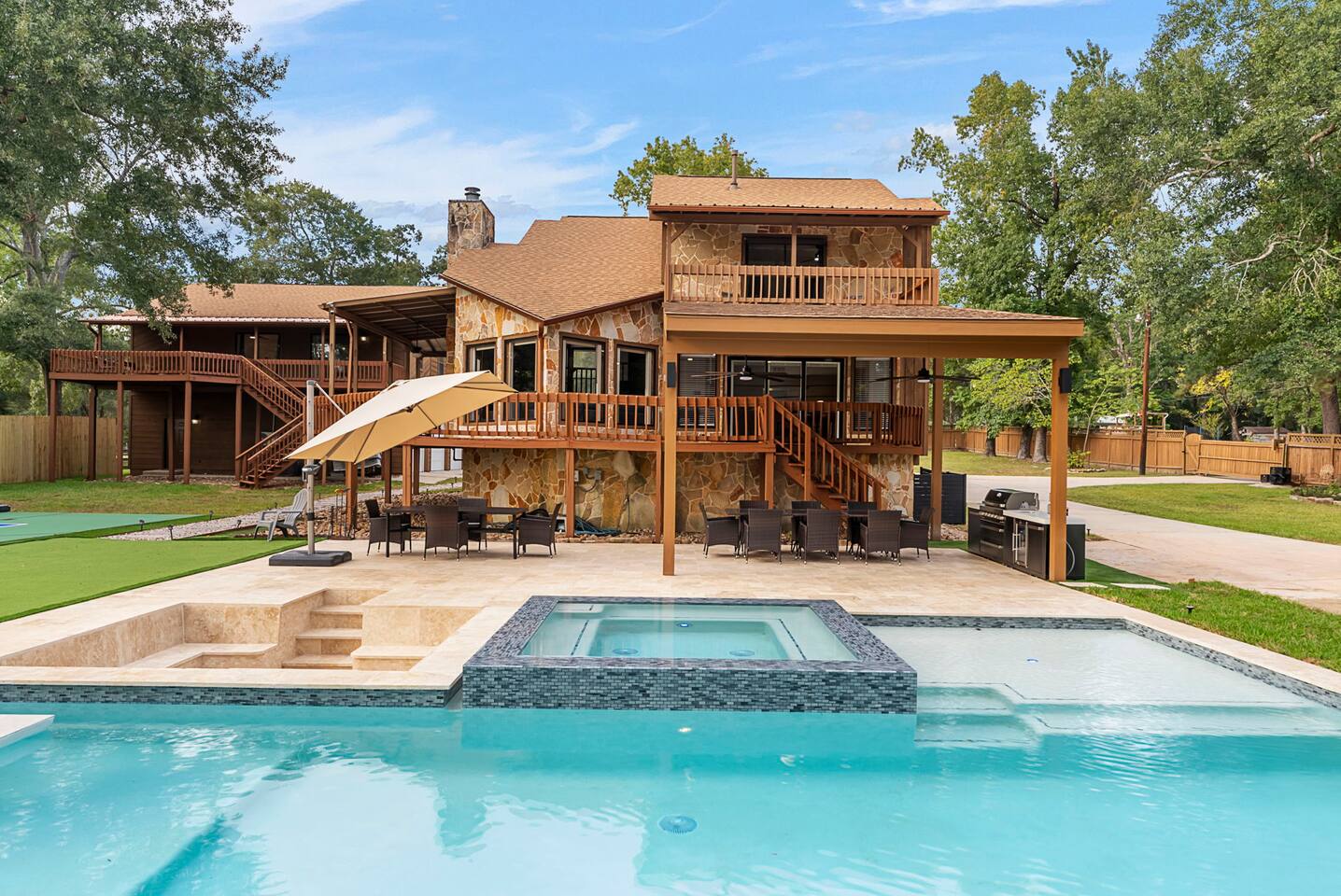 Down country roads on the north shores of Lake Conroe in Willis, TX you will find our country modern oasis "Infinity Oaks", the ULTIMATE family-fun retreat on 2+ acres! Swim in the sparkling new custom pool/spa, enjoy the sunken fire-pit with s'mores, play air hockey/ping pong/billiards in the custom game-room with bar & big-screen TV, or go on the paddleboards & kayaks on Lake Conroe! Literally the fun will never end here with the additional private pickleball/multi-sport court, games, & more!