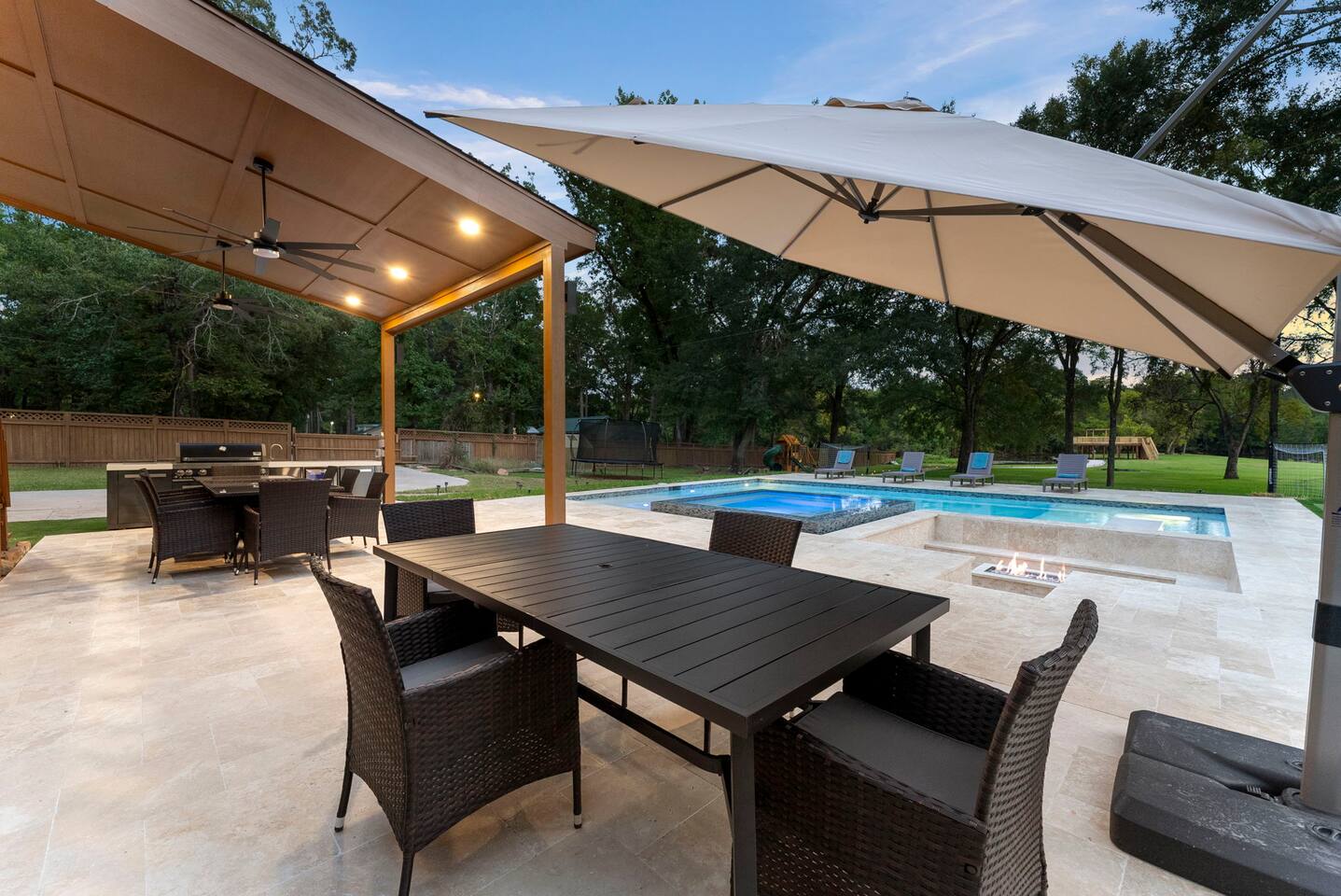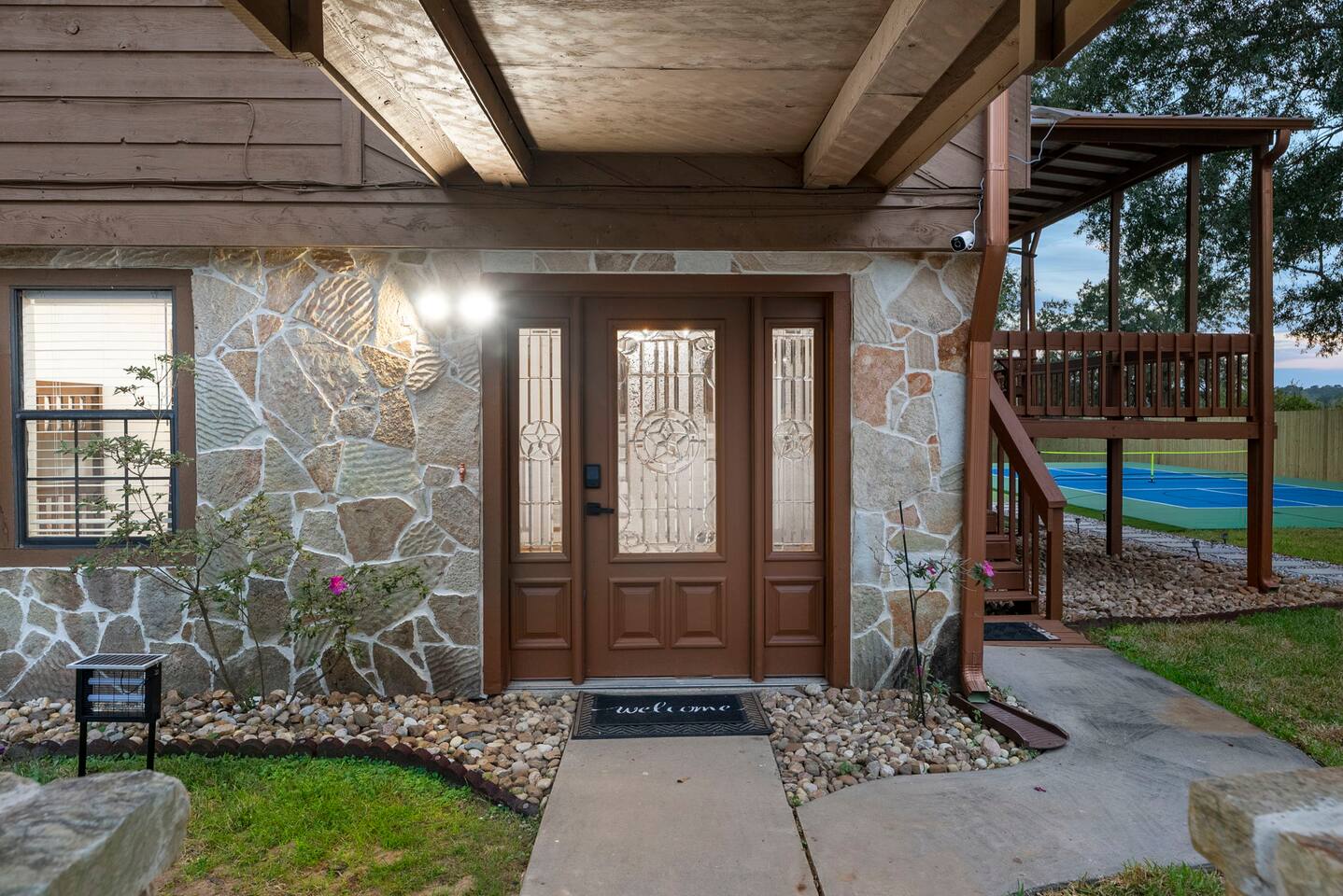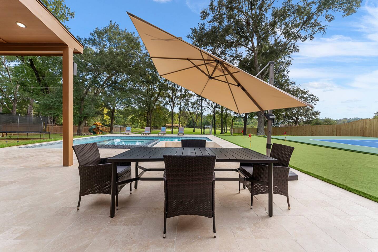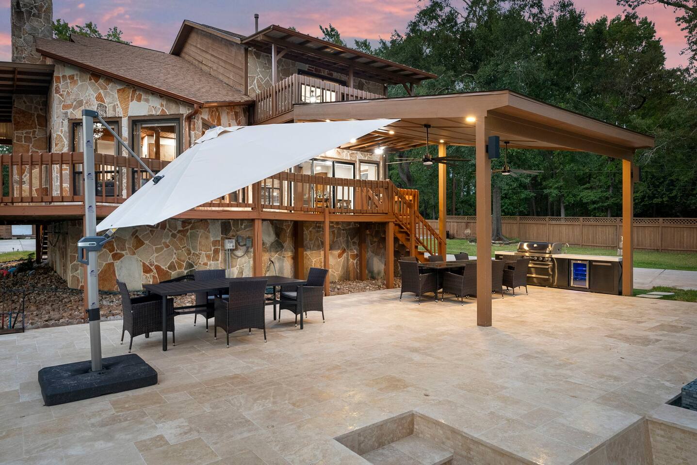 Down country roads on the north shores of Lake Conroe in Willis, TX you will find our country modern oasis "Infinity Oaks", the ULTIMATE family-fun retreat on 2+ acres! Swim in the sparkling new custom pool/spa, enjoy the sunken fire-pit with s'mores, play air hockey/ping pong/billiards in the custom game-room with bar & big-screen TV, or go on the paddleboards & kayaks on Lake Conroe! Literally the fun will never end here with the additional private pickleball/multi-sport court, games, & more!