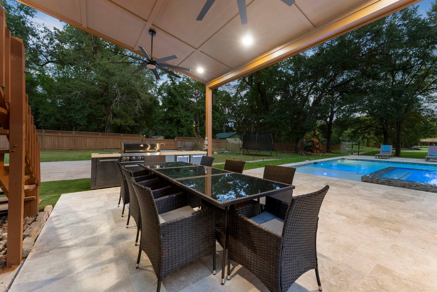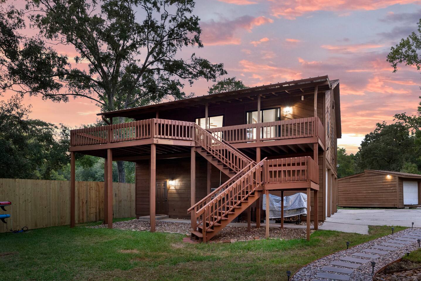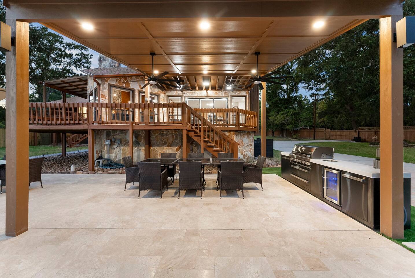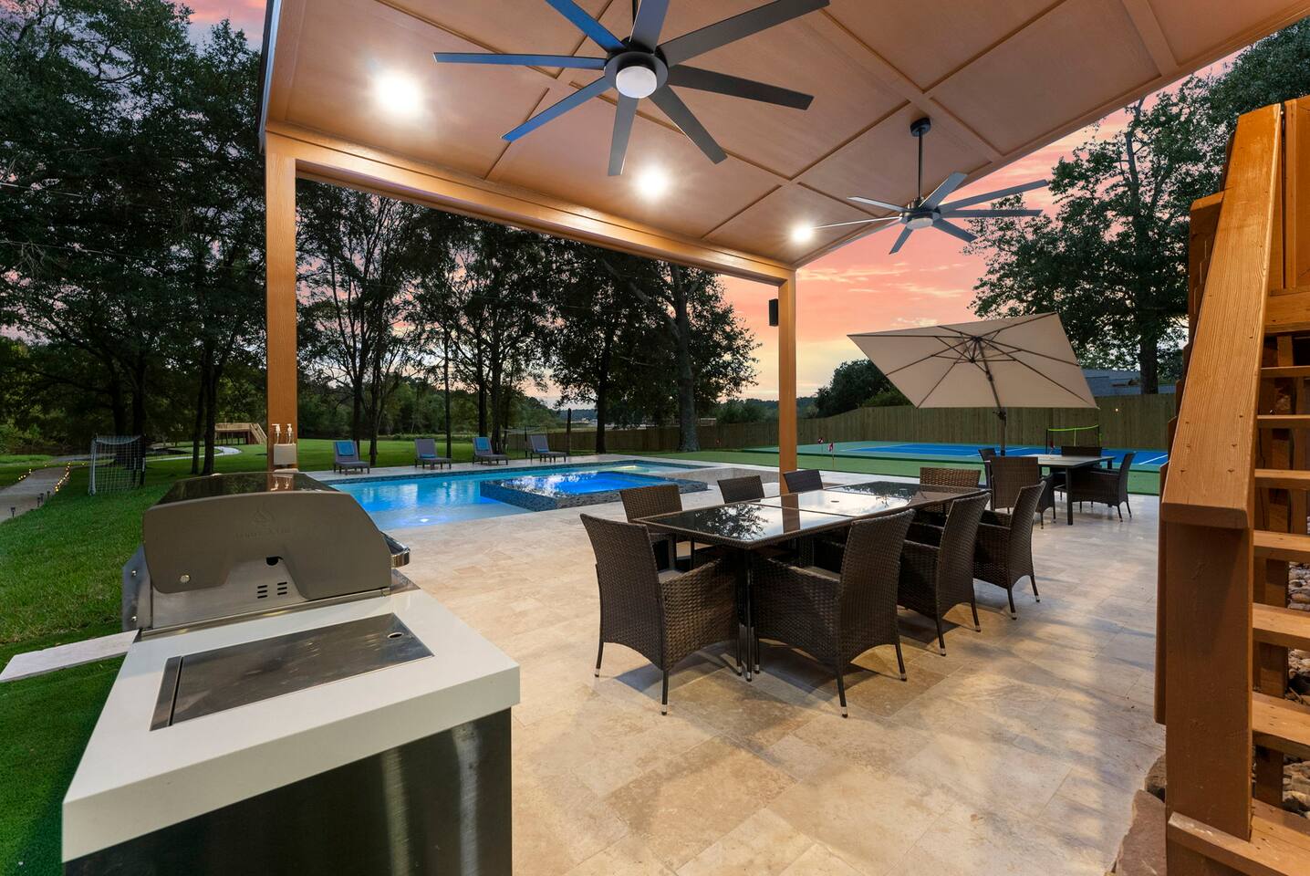 Down country roads on the north shores of Lake Conroe in Willis, TX you will find our country modern oasis "Infinity Oaks", the ULTIMATE family-fun retreat on 2+ acres! Swim in the sparkling new custom pool/spa, enjoy the sunken fire-pit with s'mores, play air hockey/ping pong/billiards in the custom game-room with bar & big-screen TV, or go on the paddleboards & kayaks on Lake Conroe! Literally the fun will never end here with the additional private pickleball/multi-sport court, games, & more!